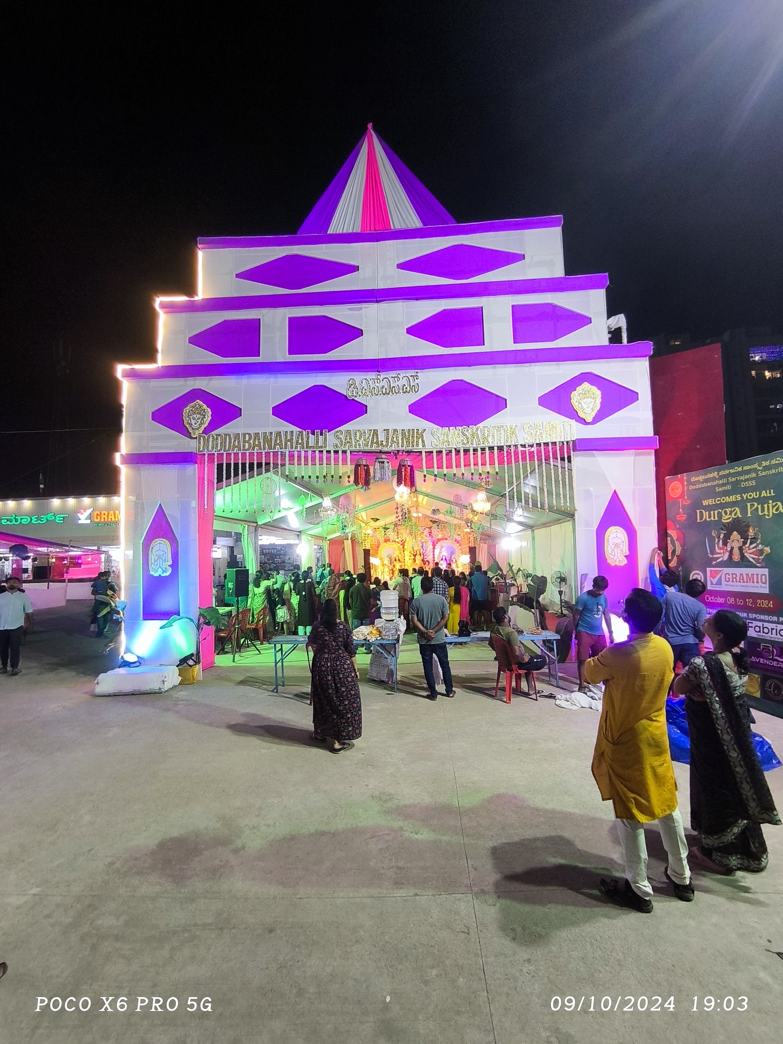 We celebrate Durga Puja with devotion, joy, and cultural pride. In an open place and is open to all. We all can join and celebrate.